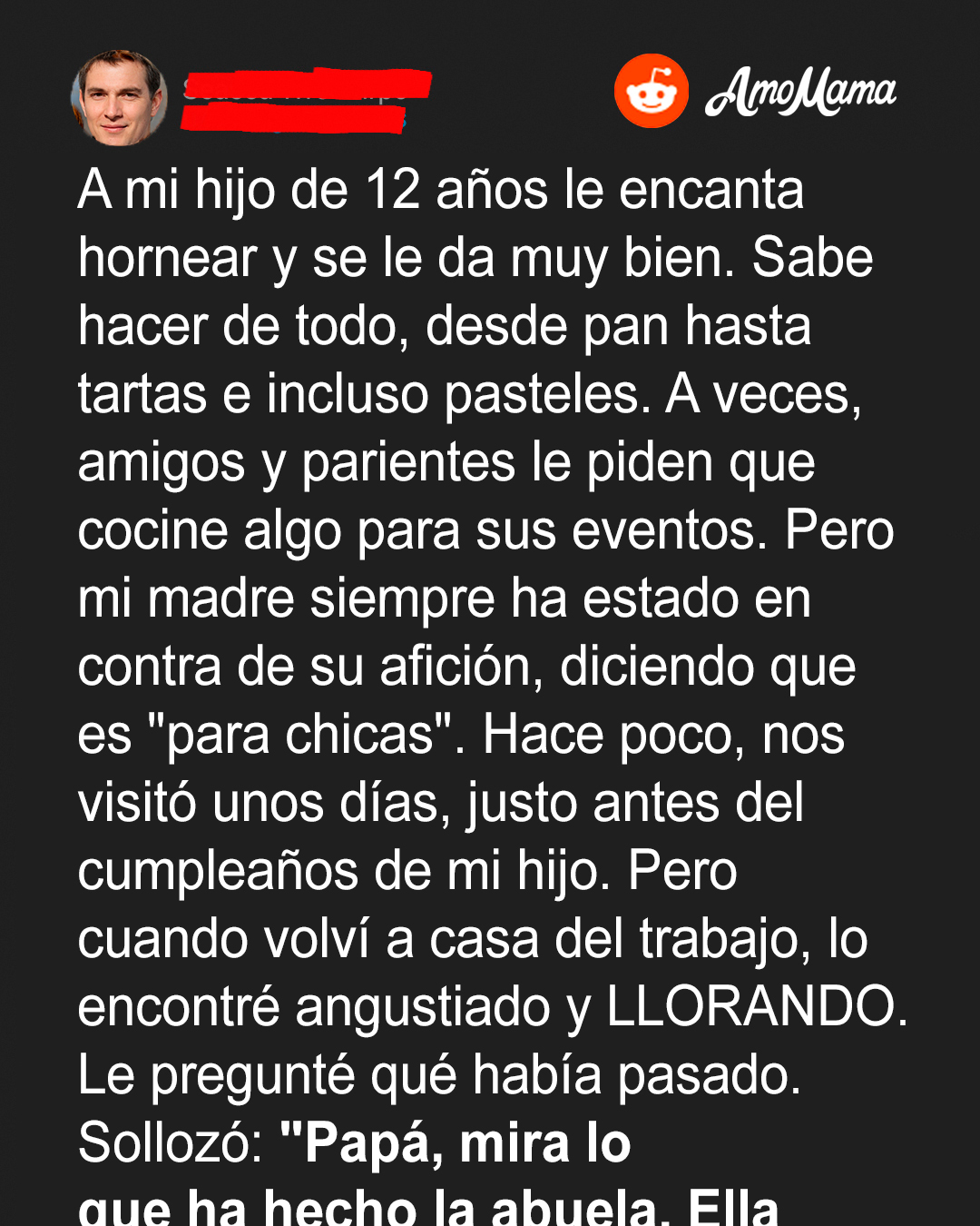 “Papá… ¿por qué es tan mala la abuela? Odia mi repostería. Siempre hace que parezca que hago algo mal”.