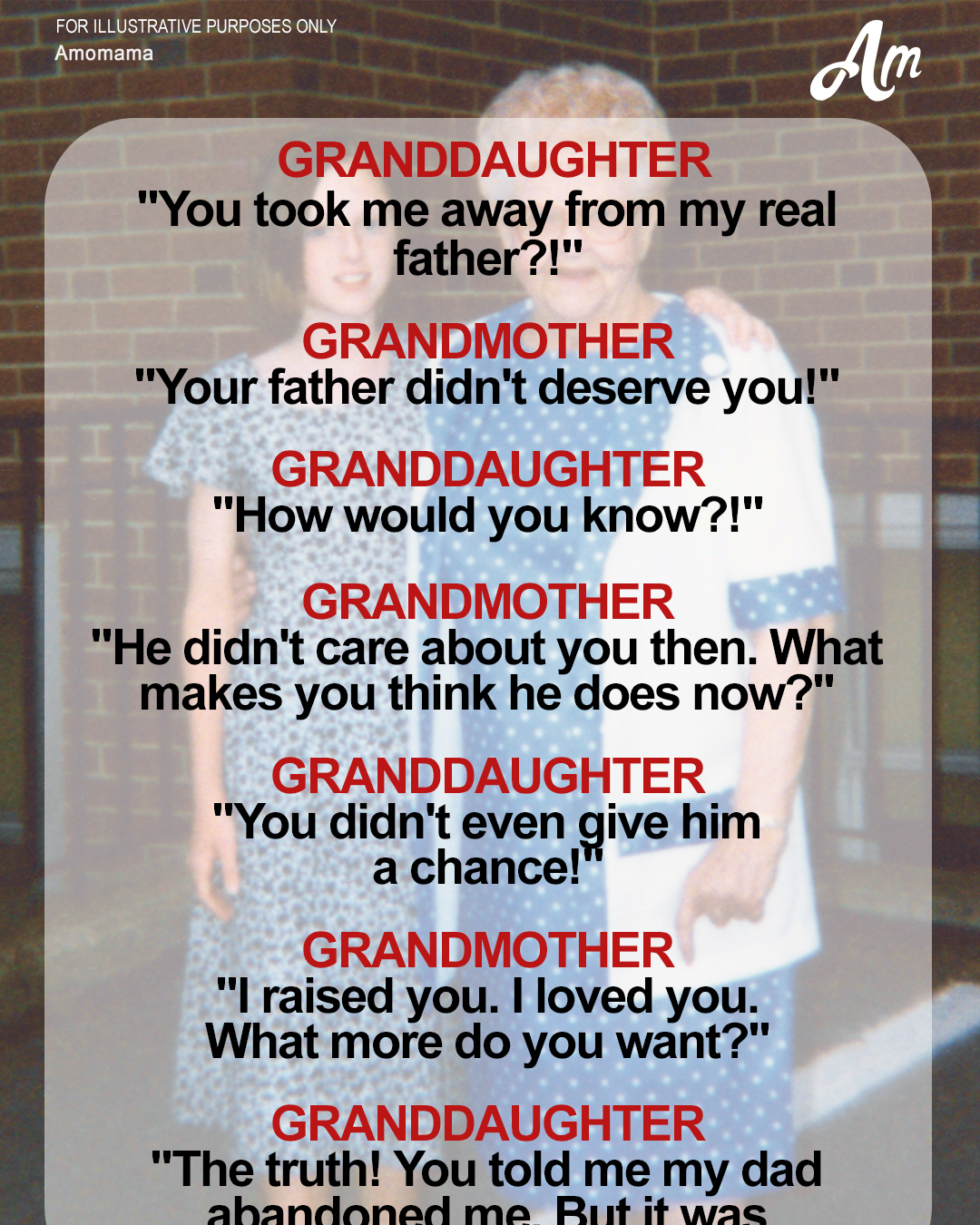 But Grandma was my only real family. My parents had left me when I was a baby, I had never even seen them.
