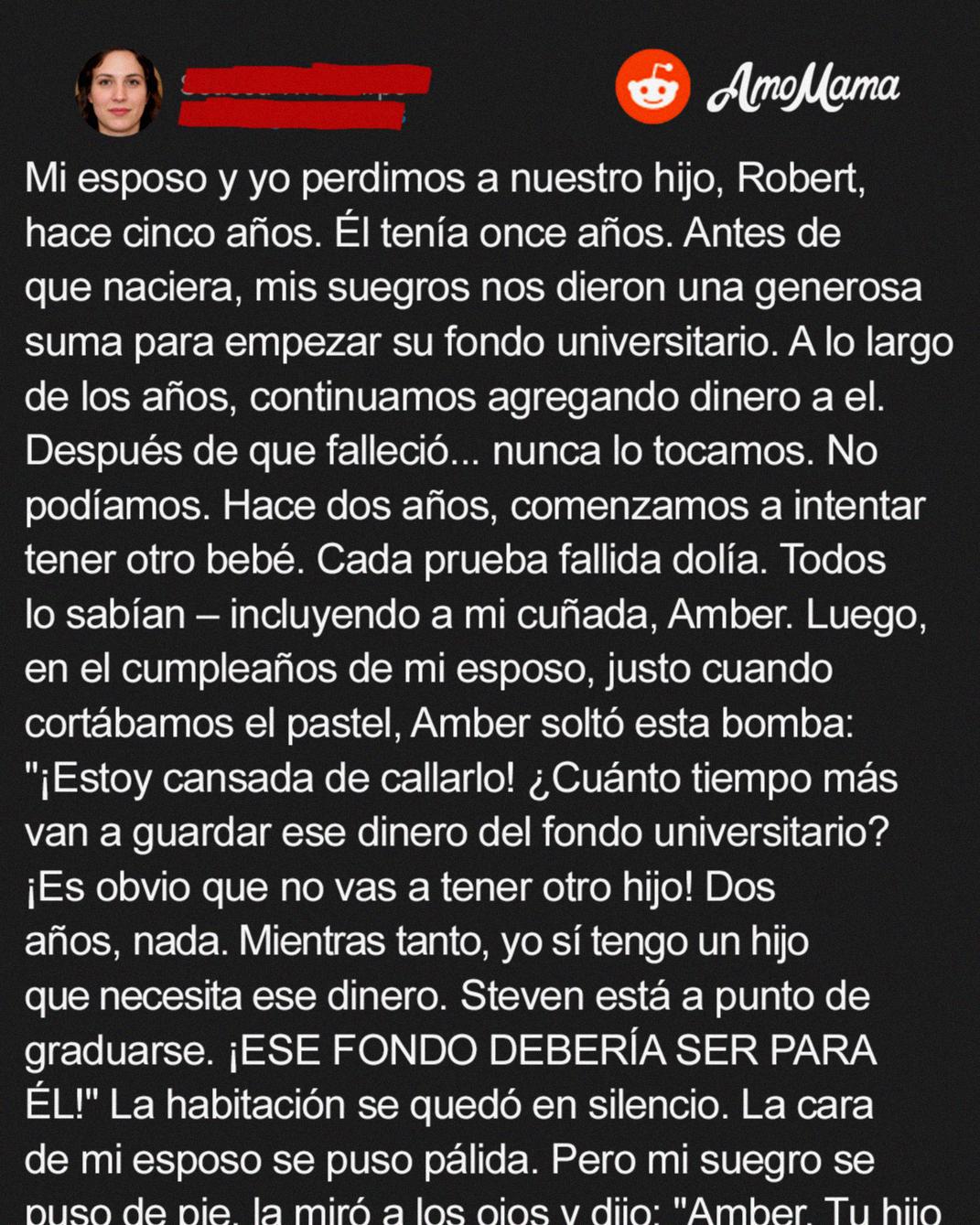 Después de la muerte de Robert, nunca tocamos la cuenta. Ni siquiera hablamos de ella. No soportaba verla, no podía enfrentarme al número que una vez significó esperanza. Se quedó ahí, intacta y sagrada. Como un santuario del que no hablábamos pero que no nos atrevíamos a desmantelar.