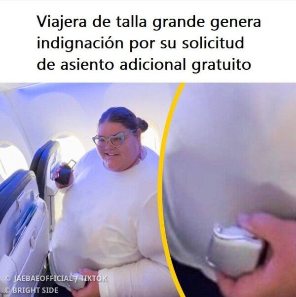 “Lo realmente indignante es que nos obliguen a pagar el doble por el mismo alojamiento que cualquier otra persona obtiene con un solo boleto”, escribió en un video viral de TikTok.“Y no olvidemos que los asientos de los aviones se reducen cada año, lo que dificulta aún más la experiencia de quienes ya necesitan espacio adicional”, añadió Jae’lynn. Resumió: “Es hora de que dejen de lucrarse con nuestros cuerpos y empiecen a tratar a todos de forma justa”.Sus preocupaciones no se limitan a la comodidad, sino a la equidad. Sin embargo, la conversación en línea que siguió a su video reveló fuertes opiniones en ambos lados del asunto.El video de Jae’lynn recibió una oleada de respuestas, con algunos apoyándola y otros en total desacuerdo. Muchos comentaristas argumentaron que si una persona ocupa dos asientos, debería pagar por ambos, al igual que otros pasajeros pagan extra por espacio adicional para las piernas o una mejora de asiento.